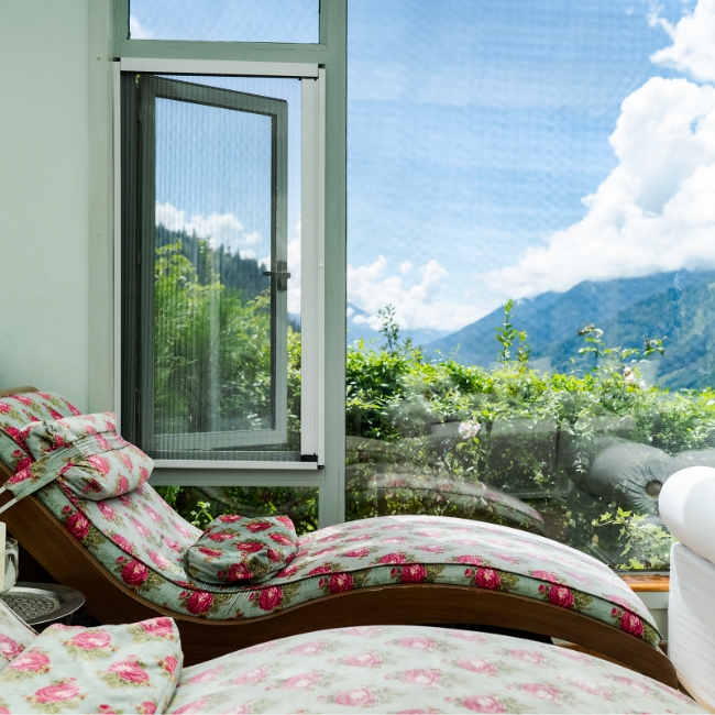 Sitara Himalaya, an opulent hideaway, clinging to the slope at 8,200 feet above the Kullu Valley invites you to.